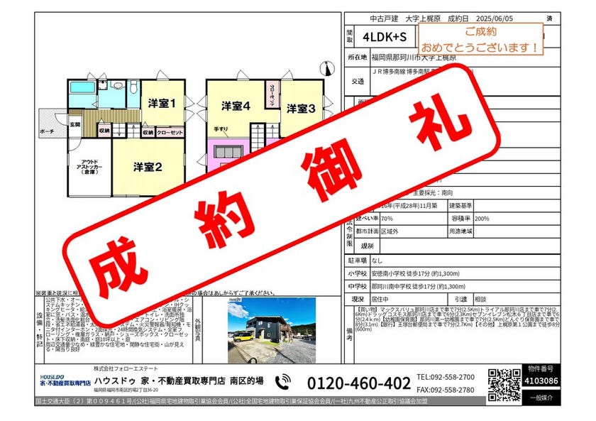 《2026年3月 成約御礼》福岡市南区・春日市・那珂川市専門店 ハウスドゥ南区的場店 ご成約情報!!|不動産・一戸建て・マンション・土地ならハウスドゥ 家・不動産買取専門店 南区的場