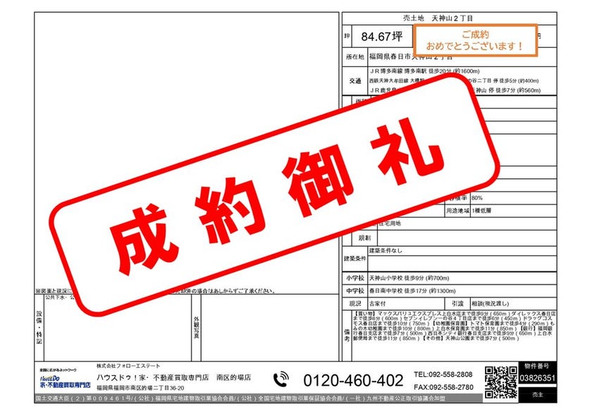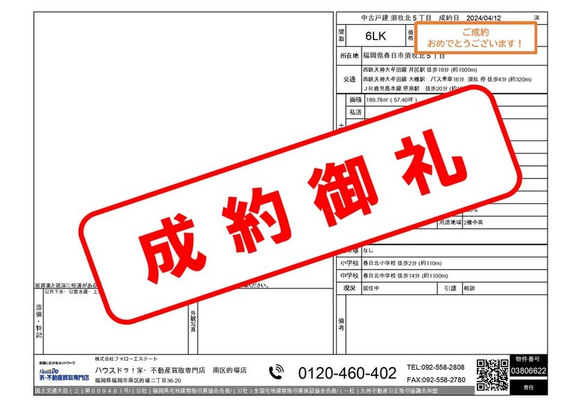 《2024年3月 成約御礼》福岡市南区・春日市・那珂川市専門...