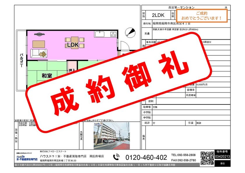 西鉄高宮駅まで徒歩6分!中古マンション2LDK 売主S様 ご成約おめでとうございます!