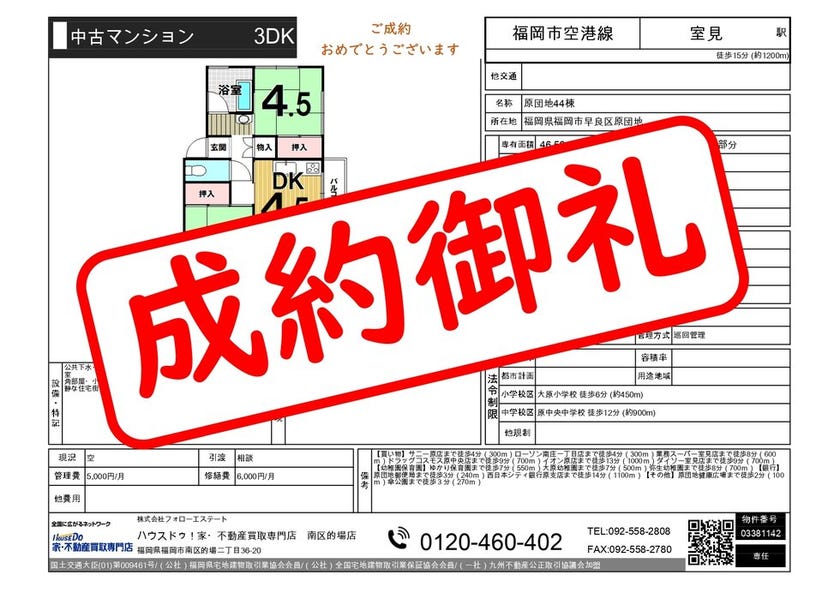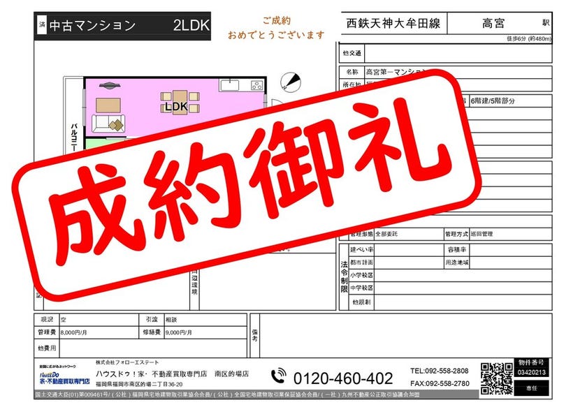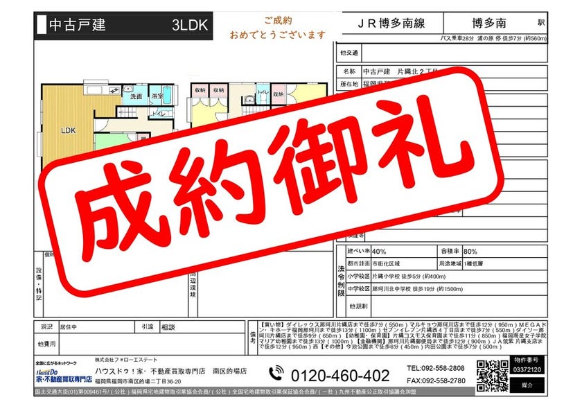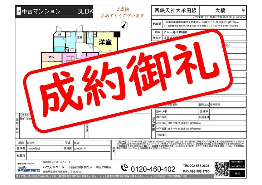 《2023年3月 成約御礼》福岡市南区・春日市・那珂川市専門...