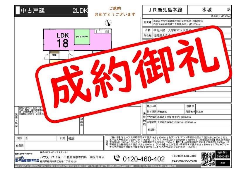 太宰府市大字吉松 中古戸建2LDK 敷地面積 約169.36坪! 売主T様、買主Y様 ご成約おめでとうございます!