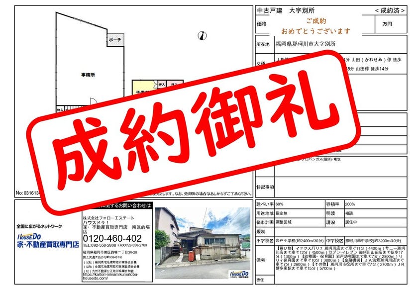 《2022年11月 成約御礼》福岡市南区・春日市・那珂川市専...