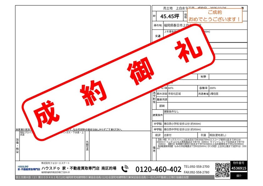 《2025年12月 成約御礼》福岡市南区・春日市・那珂川市専...