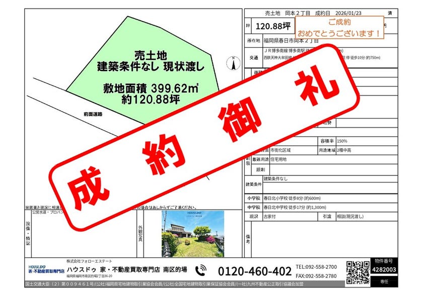 《2026年1月 成約御礼》福岡市南区・春日市・那珂川市専門...