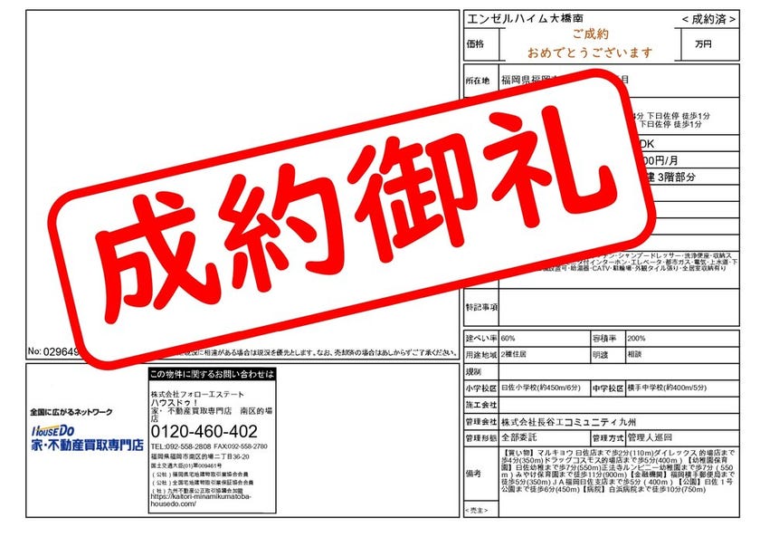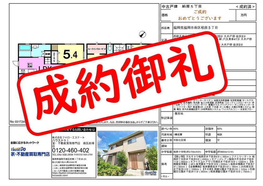 《2022年7月 成約御礼》福岡市南区・春日市・那珂川市専門...