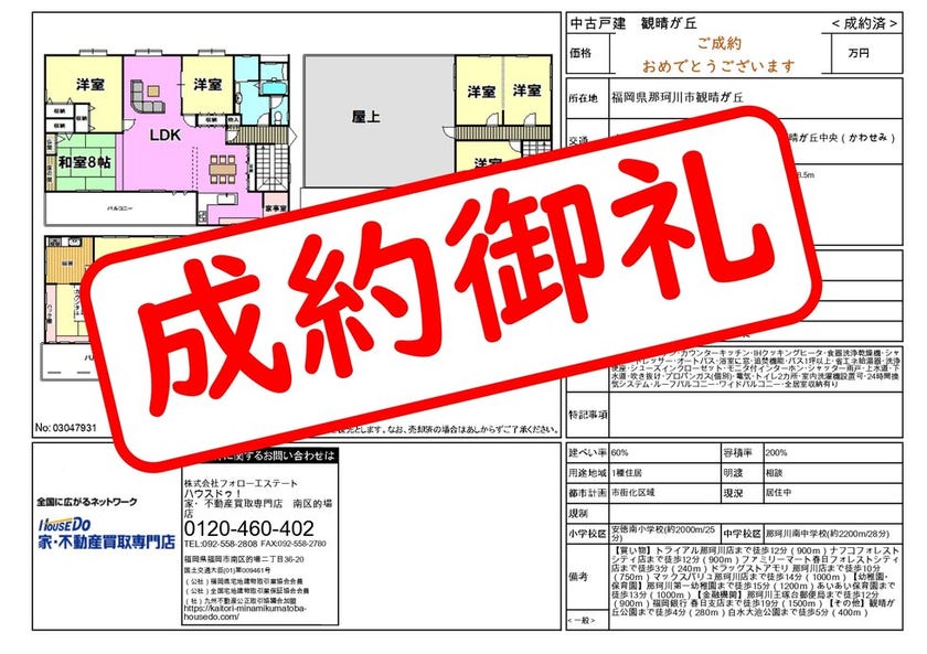 《2022年8月 成約御礼》福岡市南区・春日市・那珂川市専門...