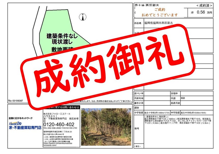 西区能古 売土地 敷地面積89坪 売主Y様 買主様 ご成約おめでとうございます!