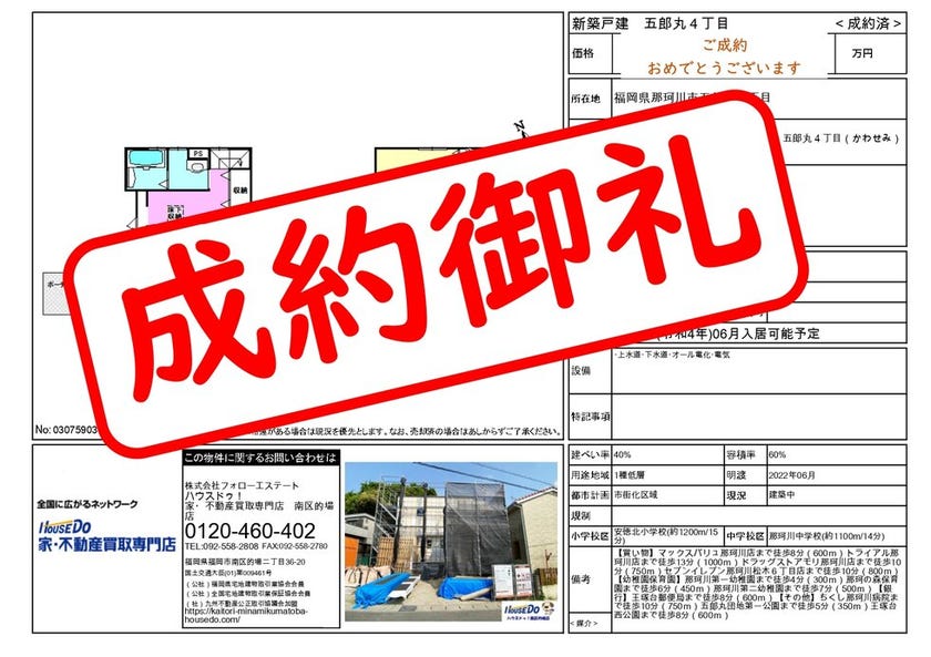 《2022年5月 成約御礼》福岡市南区・春日市・那珂川市専門...