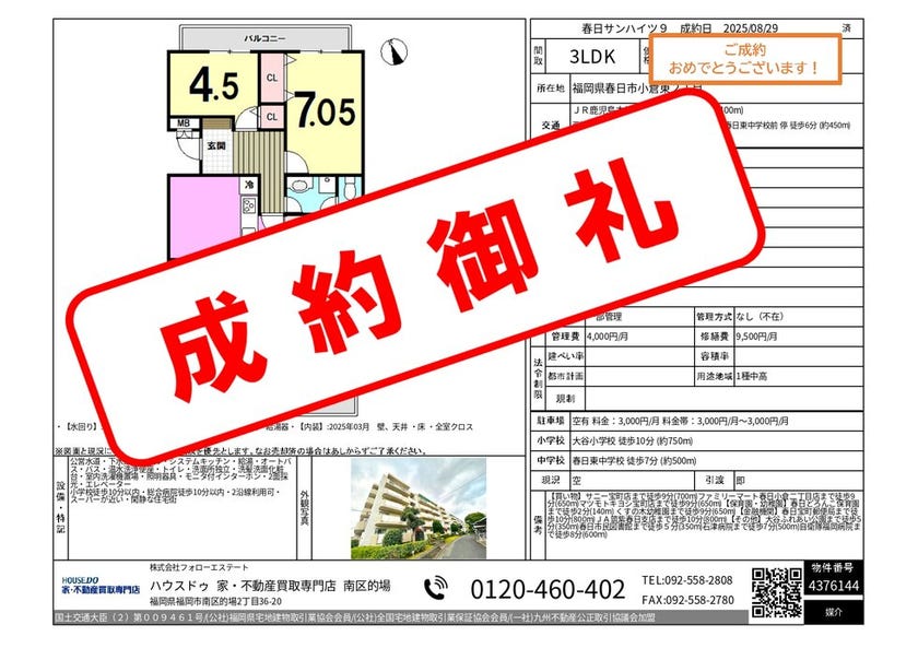 《2025年7月 成約御礼》福岡市南区・春日市・那珂川市専門...