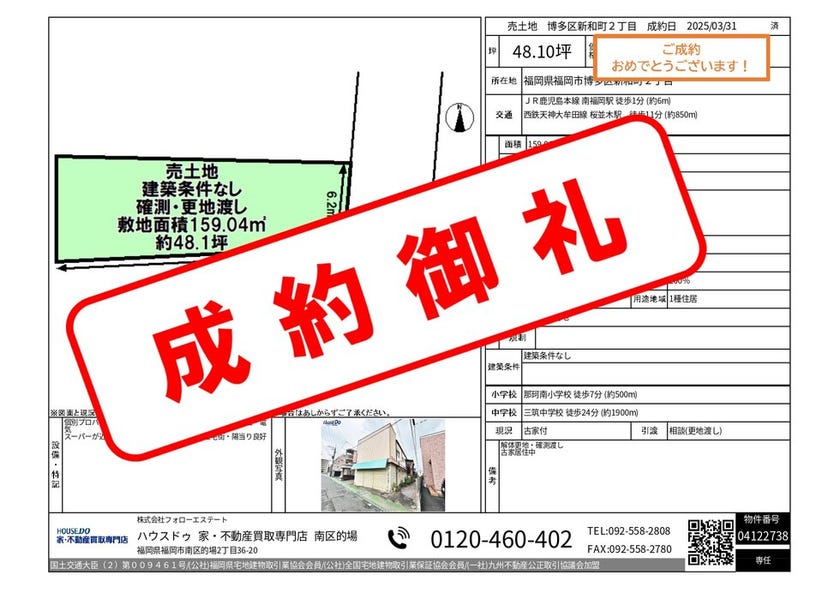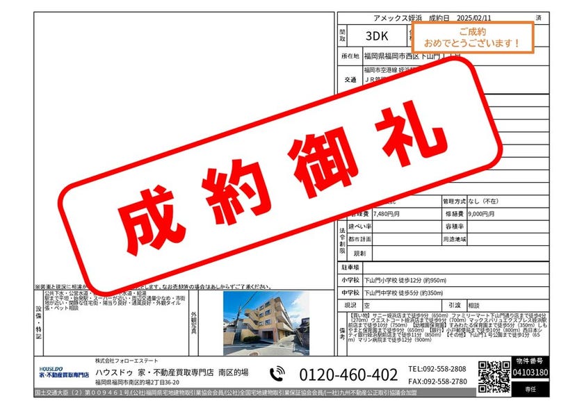 《2025年3月 成約御礼》福岡市南区・春日市・那珂川市専門...